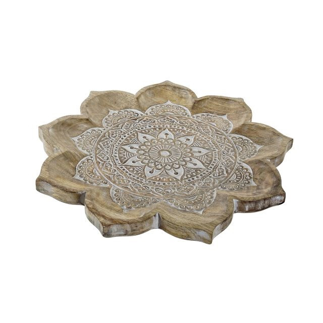 Asztali kínáló Mandala mangófa 46x46x4 cm natúr