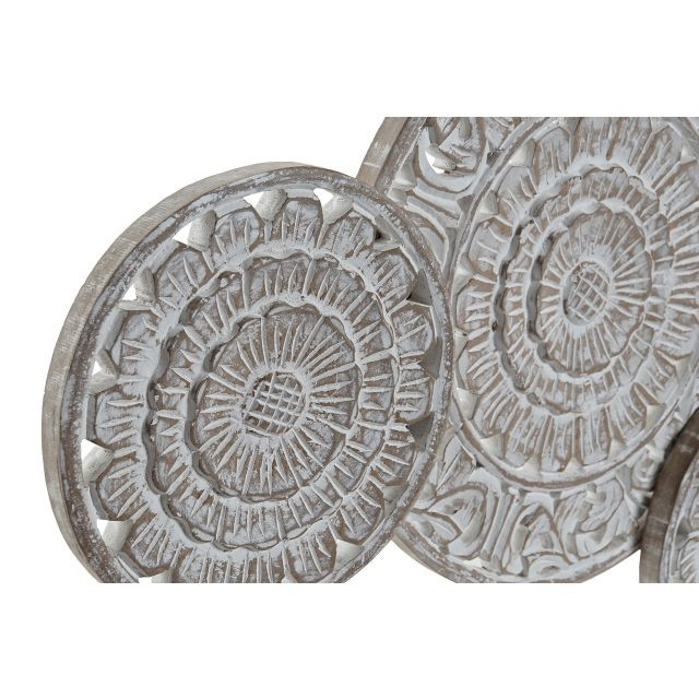 Dekoráció falra körök vésett mangófa 108x3,5x64 cm világosbarna, fehér