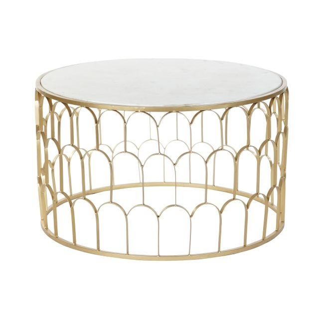 Dohányzóasztal fém, márvány 87x87x51,5 cm arany, fehér