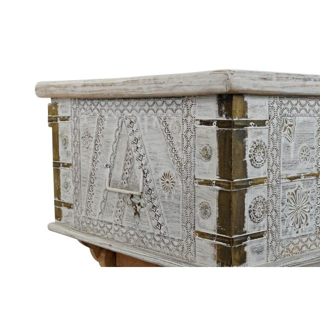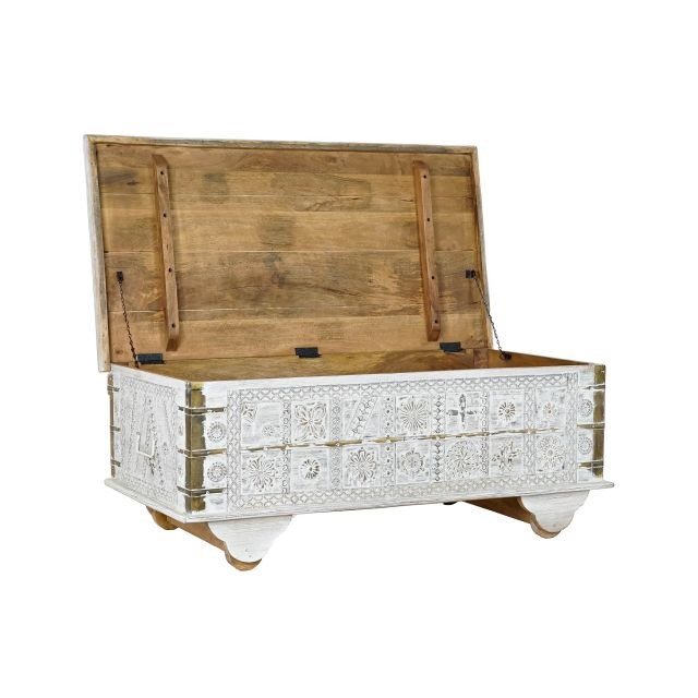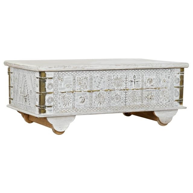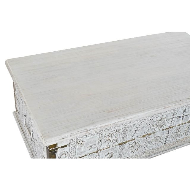 Dohányzóasztal mangófa, fém 115x60x45 cm fehér, arany