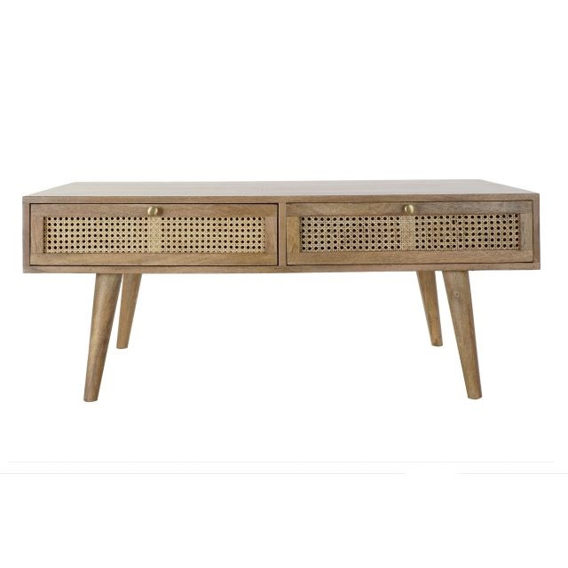 Dohányzóasztal mangófa, rattan 115x60x46 cm natúr