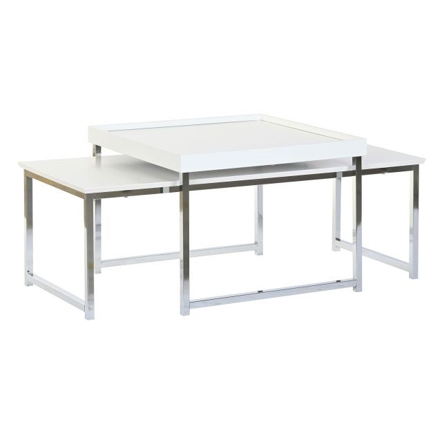 Dohányzóasztal szett acél, mdf 110x48x45 cm fehér, ezüst S/2