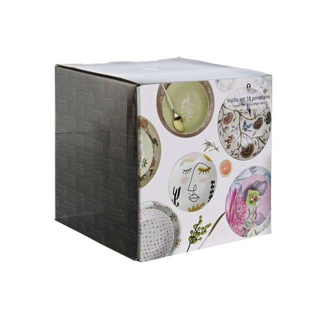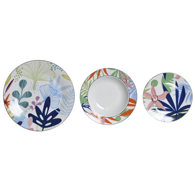 Étkészlet leveles porcelán 27x27x3 cm kék, zöld S/18