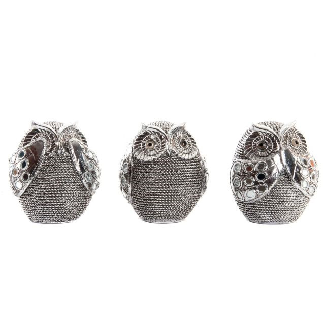 Figura bagoly krómozott poly 12x11x14 cm ezüst 3 féle