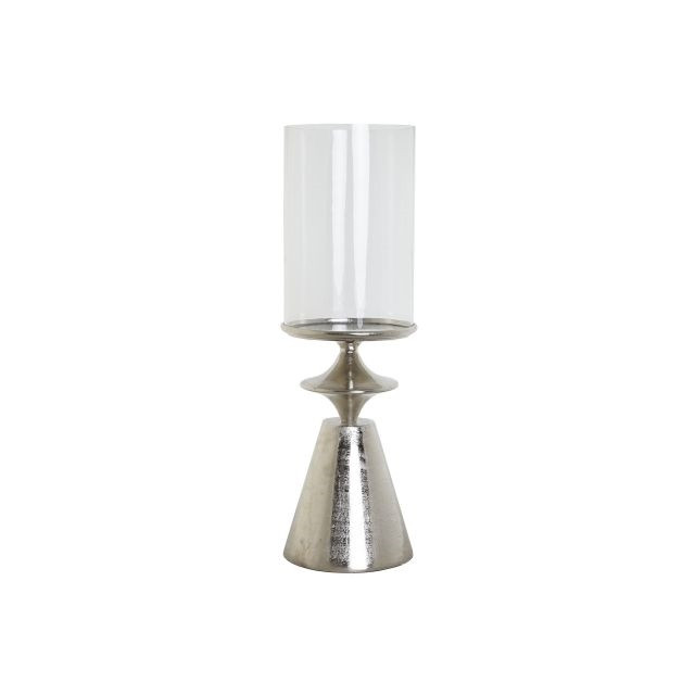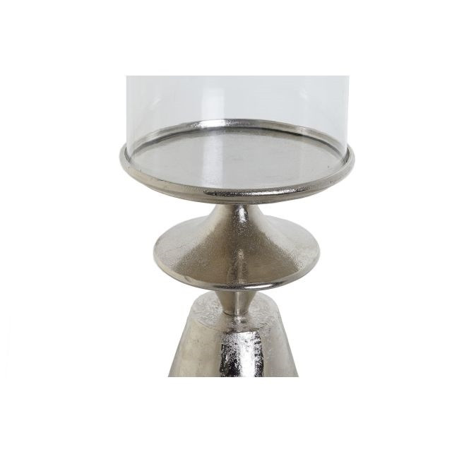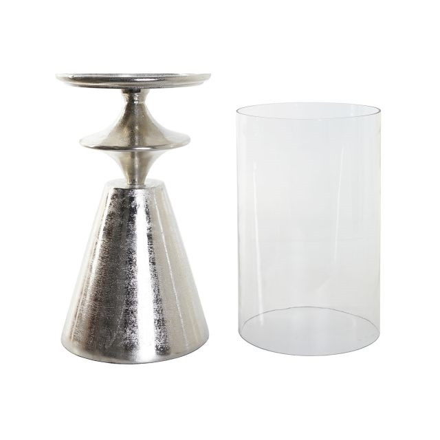 Gyertyatartó alumínium, üveg 21x21x66 cm ezüst