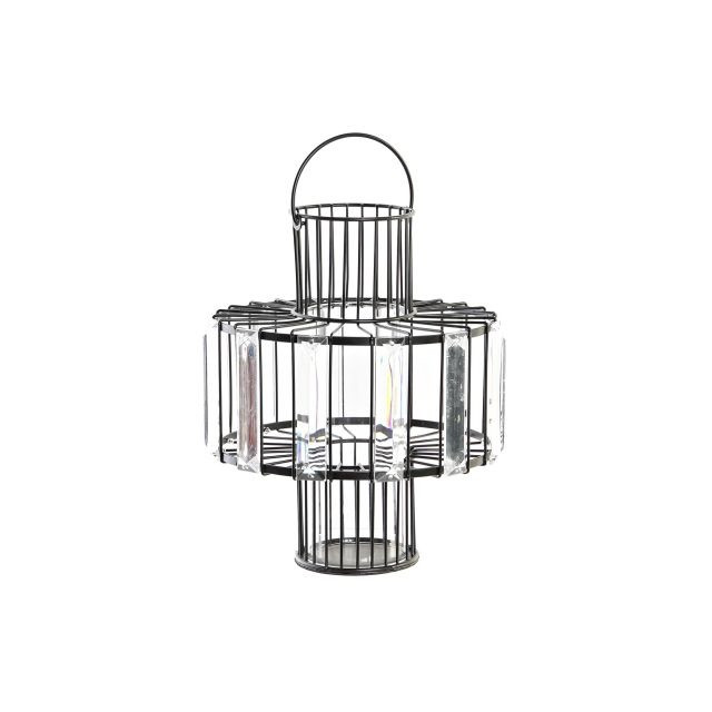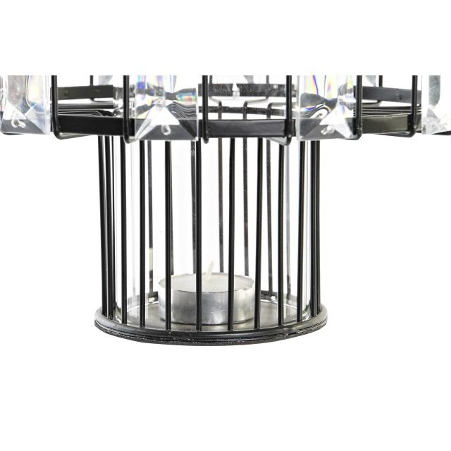 Gyertyatartó fém, üveg 20x20x26 cm fekete, átlátszó