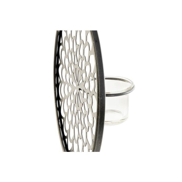 Gyertyatartó fém, üveg, fa 20x20x36 cm barna, fekete