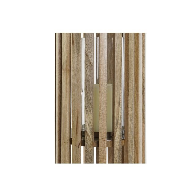 Gyertyatartó mangófa, üveg 20x20x74 cm barna, ezüst