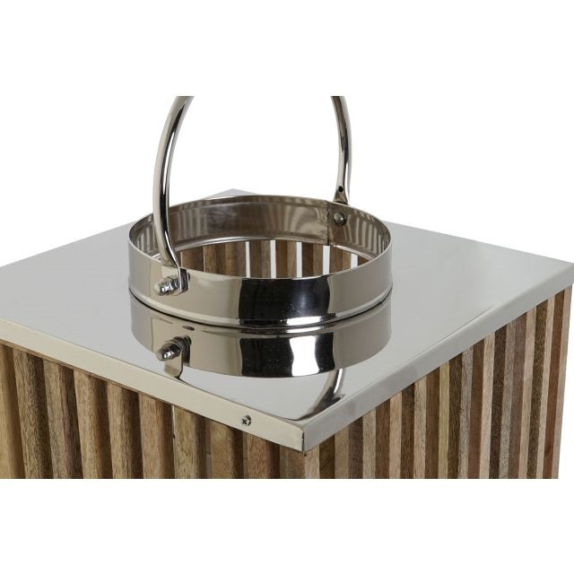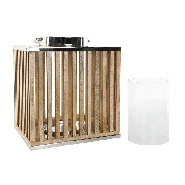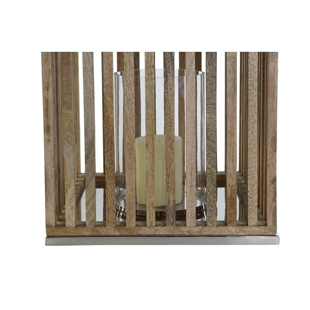 Gyertyatartó mangófa, üveg 31x31x35 cm barna, ezüst