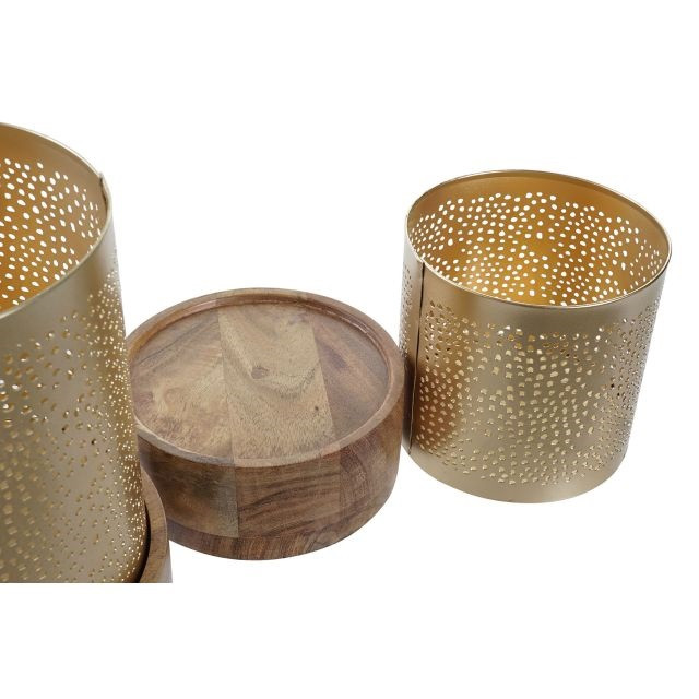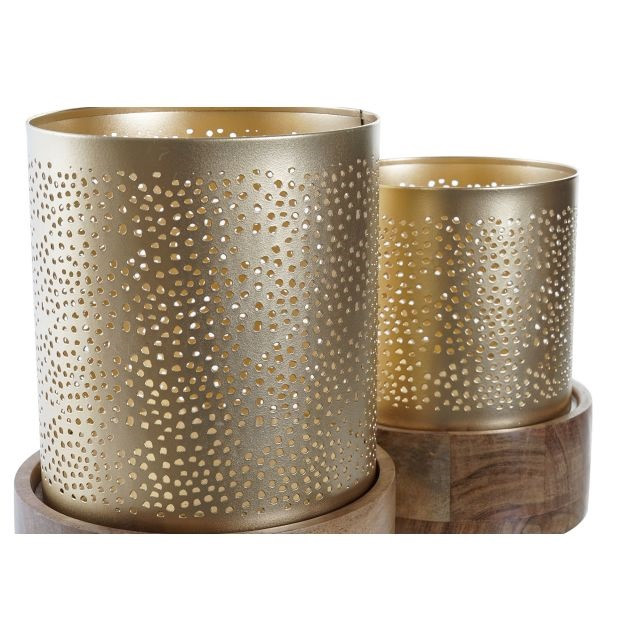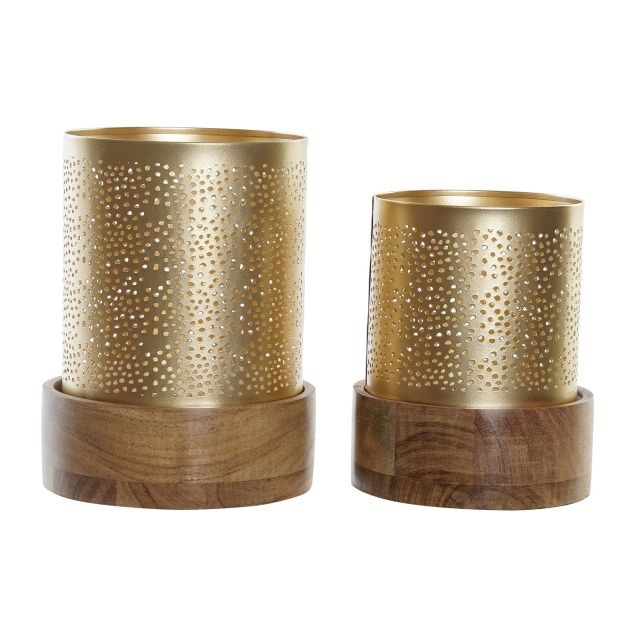 Gyertyatartó szett fém, fa 13,5x13,5x20 cm arany, barna S/2