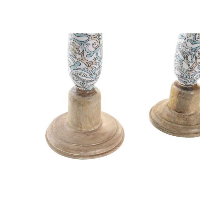 Gyertyatartó szett mangófa, fém 17x17x52,5 cm barna, színes S/2