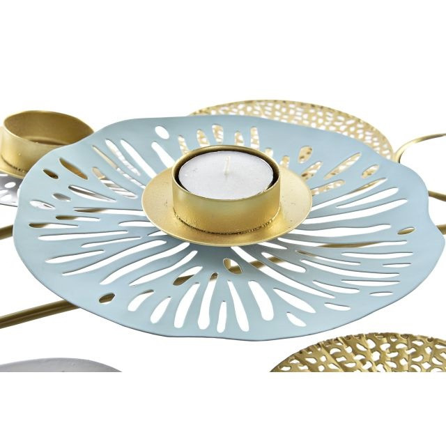 Gyertyatartó tükör tavirózsa fém, üveg 54x33x8 cm arany, menta