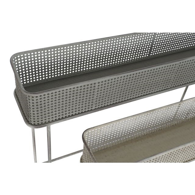 Kaspó szett fém 100x22x70 cm szürke, fehér S/2