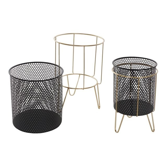 Kaspó szett fém 36x36x58 cm fekete, arany S/2