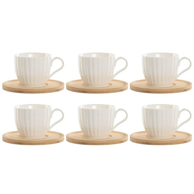 Kávés készlet bambusz alátéttel porcelán 11x8x7 cm fehér S/6