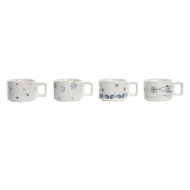 Kávés készlet dolomit, fém 11x11x27 cm kék, fehér S/4