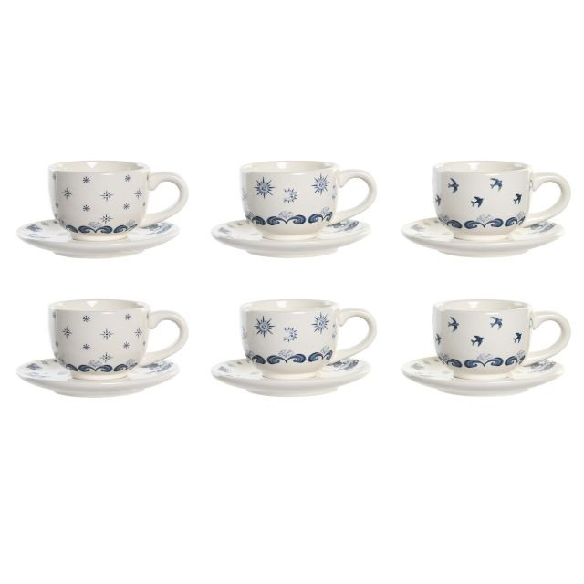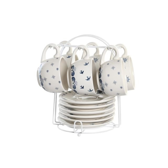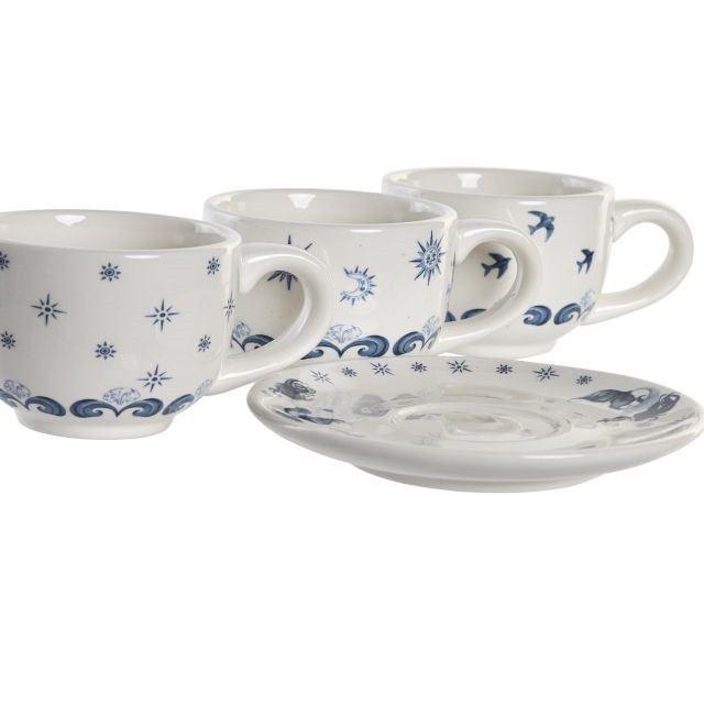 Kávés készlet dolomit, fém 20x18x20 cm kék, fehér S/6