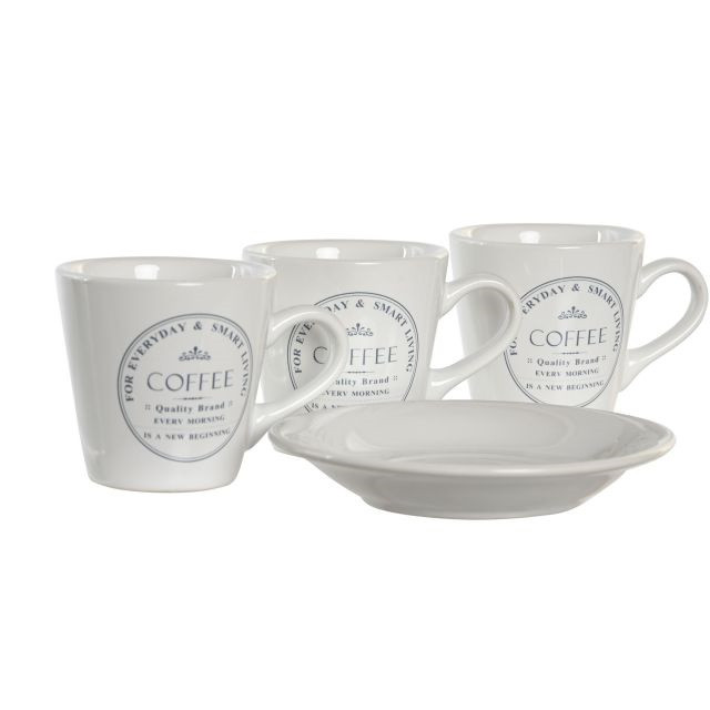 Kávés készlet kõ, fém 11x11x2 cm fehér S/6