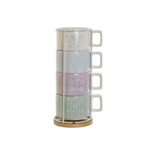 Kávés szett dolomit, fém, bambusz 11x11x27 cm színes S/5