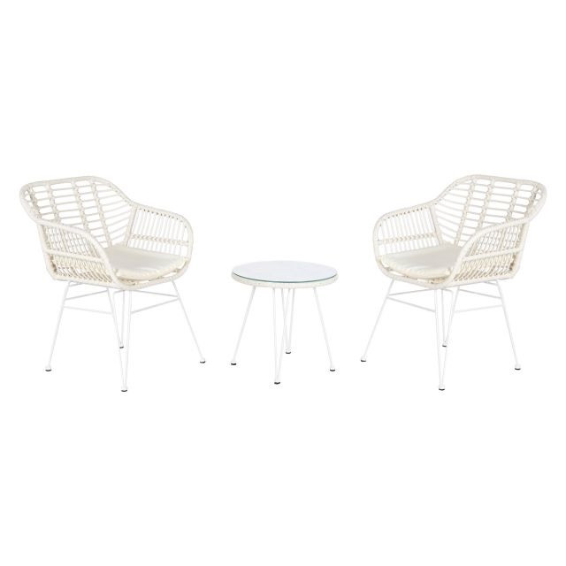 Kerti garnitúra szett rattan, fém, poliészter, üveg 56x57,5x82 cm fehér S/3
