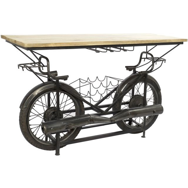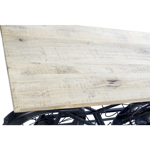 Kisasztal bortartóval motoros fém, mangófa, gumi 155x56,5x96,5 cm fekete, natúr