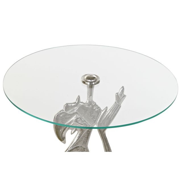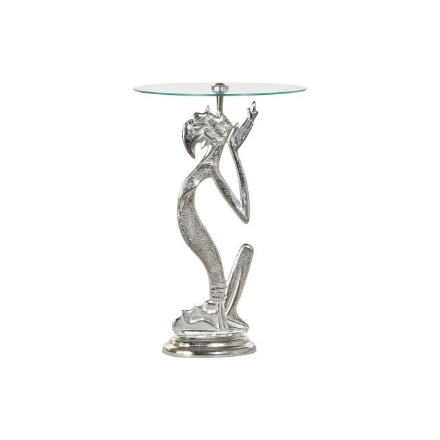 Kisasztal ember alumínium, üveg 46x46x72 cm ezüst, átlátszó