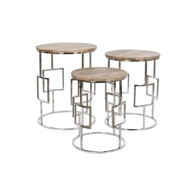 Kisasztal szett mangófa, acél 48,5x62 cm barna S/3