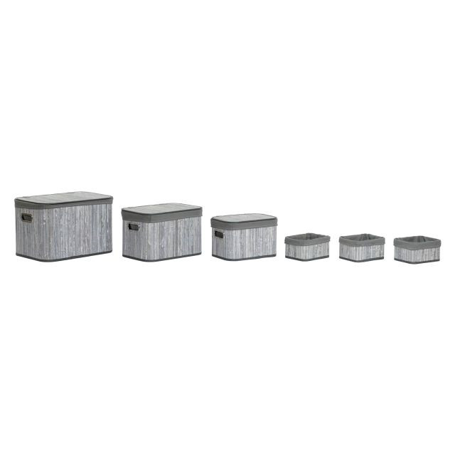 Kosár szett bambusz, poliészter, pamut, mdf 51x35x33 cm szürke, fehér S/6