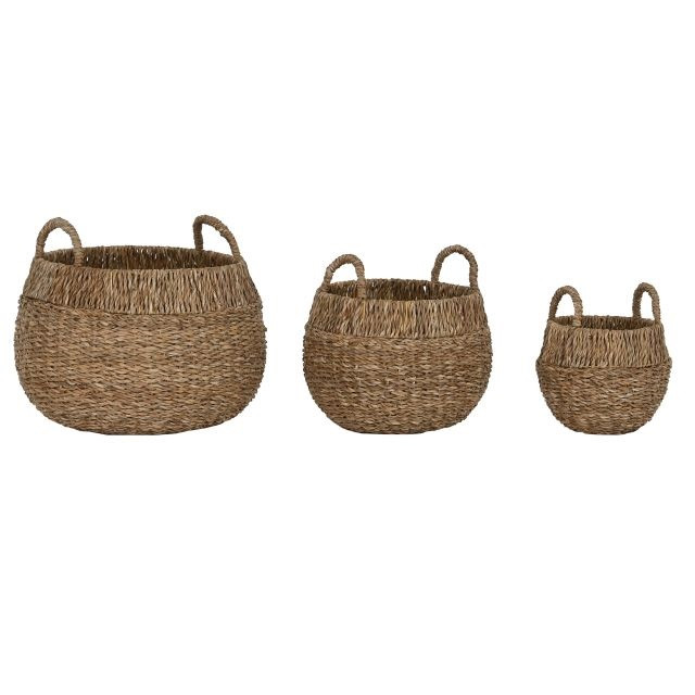 Kosár szett füllel kerek tengerifû, fém 45x45x28 cm natúr S/3