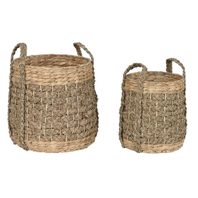 Kosár szett füllel kerek vesszõ, tengerifû 35x35x45 cm natúr S/2
