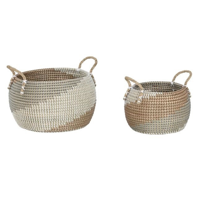 Kosár szett füllel tengerifû 40x37x29 cm natúr, narancssárga S/2