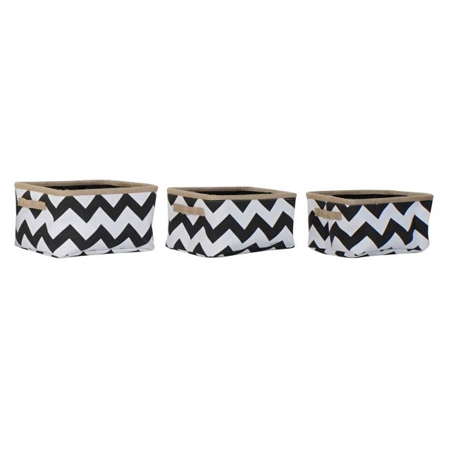 Kosár szett zigzag poliészter, juta 37x32x21 cm fehér, fekete S/3
