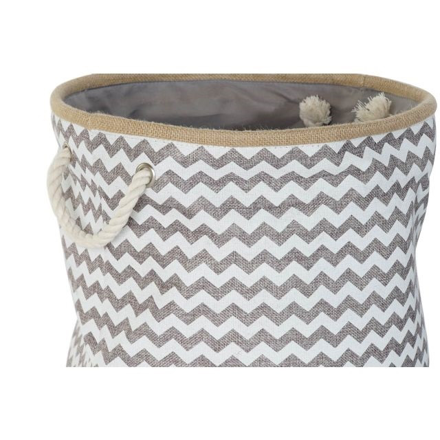 Kosár zigzag poliészter, juta 38x38x45 cm szürke, fehér