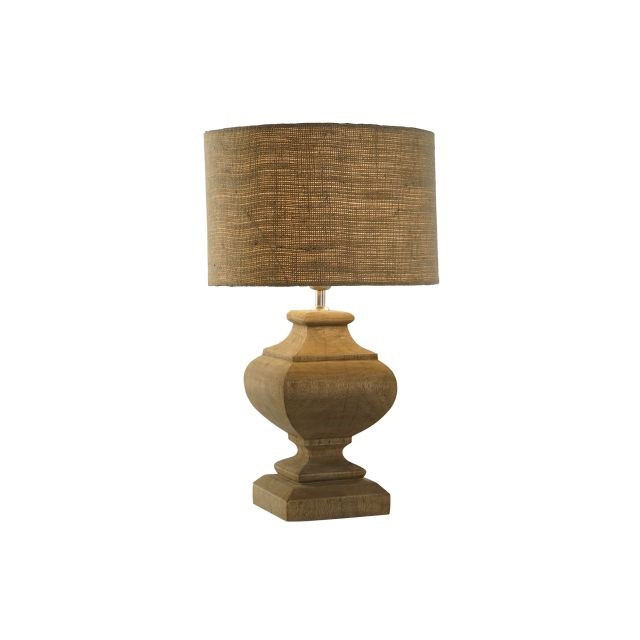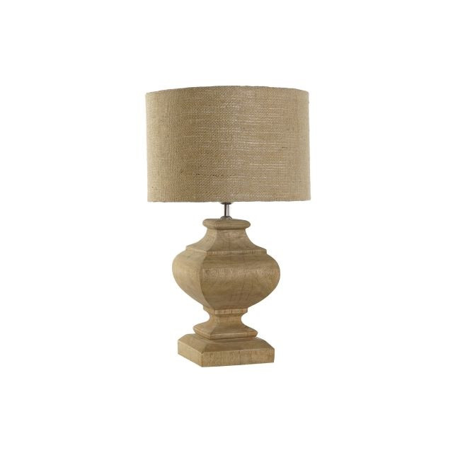 Lámpa asztali faragott fa, juta 36x36x61 cm natúr
