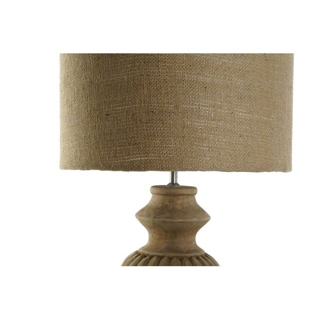 Lámpa asztali faragott fa, juta 44x44x91 cm natúr