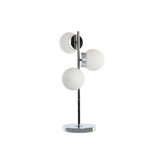 Lámpa asztali gömb üveg, fém 26x26x59 cm ezüst, fehér