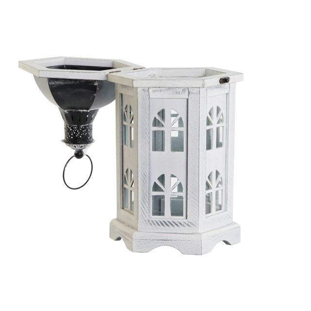 Mécsestartó fa, üveg 19x17x39 cm fehér, sötétszürke