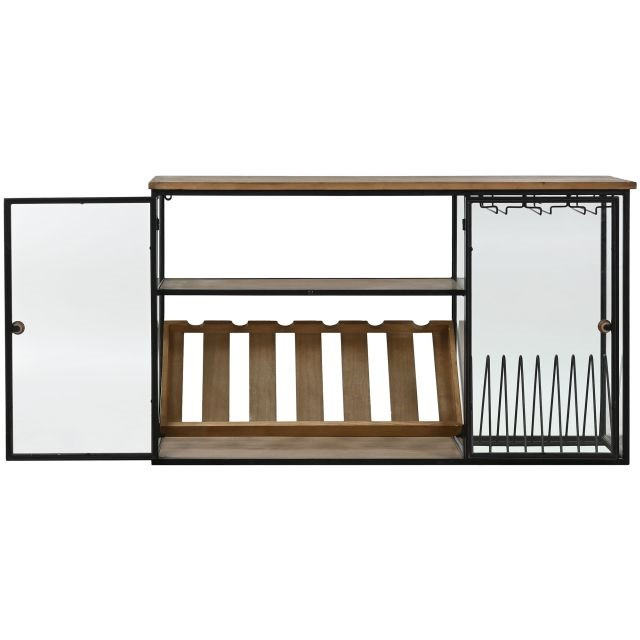 Palacktartó fém, üveg, fa 107x36x70 cm natúr, fekete
