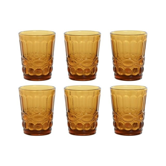 Pohár szett 240 ml üveg 8x8x10 cm borostyán S/6