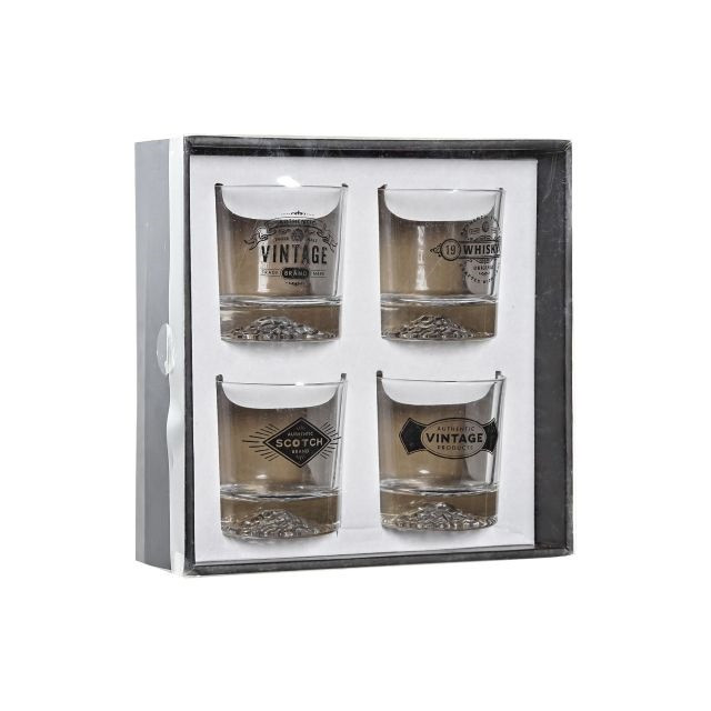 Pohár szett üveg 25x25x8,5 cm átlátszó, fekete S/4