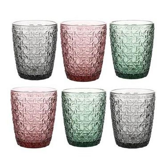 Pohár szett üveg 8,7x8,7x17 cm zöld, piros S/6