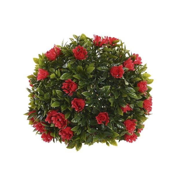 Selyemvirág gömb rózsa polietilén 20x20x20 cm zöld, piros
