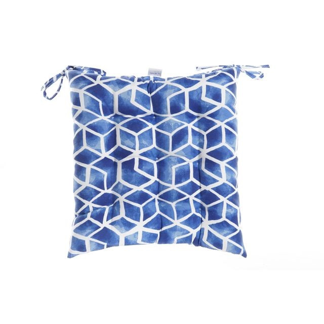 Székpárna geometrikus poliészter 40x40x7 cm kék, fehér