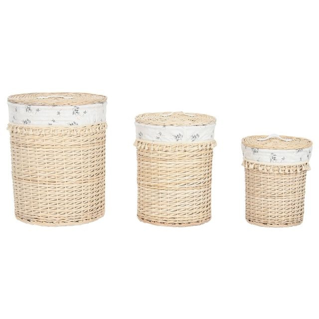 Szennyeskosár szett kerek fonott 45x45x55 cm natúr S/3