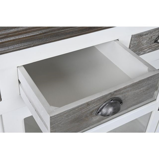 Tálalószekrény mangófa, üveg 165x45,7x105,4 cm szürke, fehér