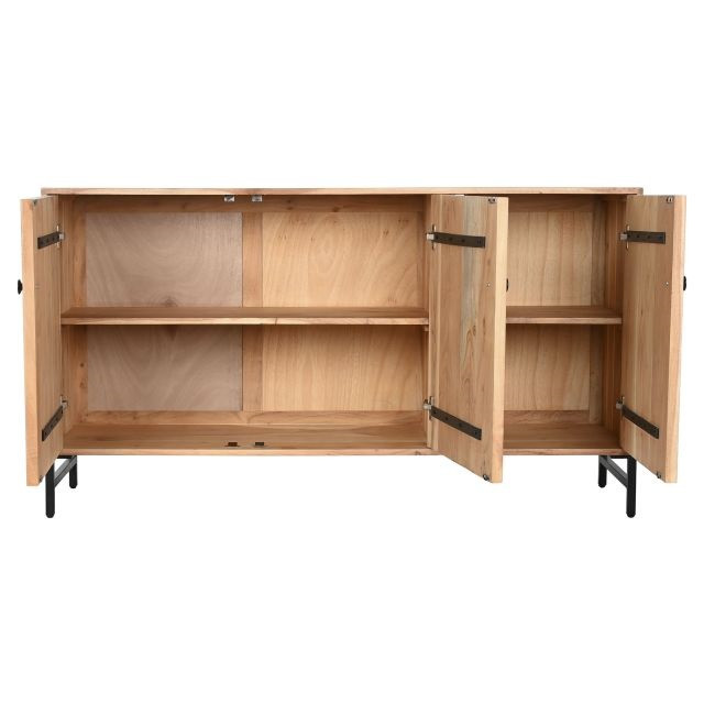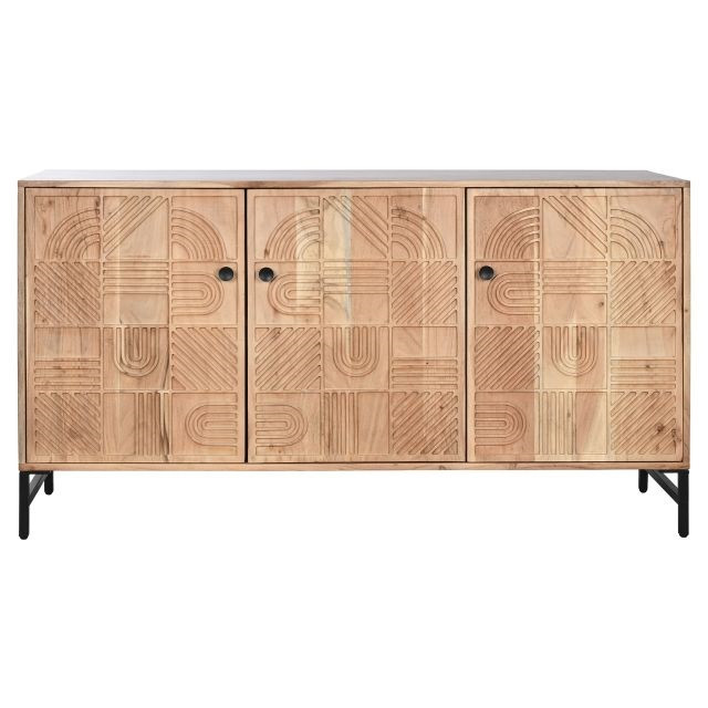 Tálalószekrény mintás akácfa, fém 145x40x80 cm barna, fekete