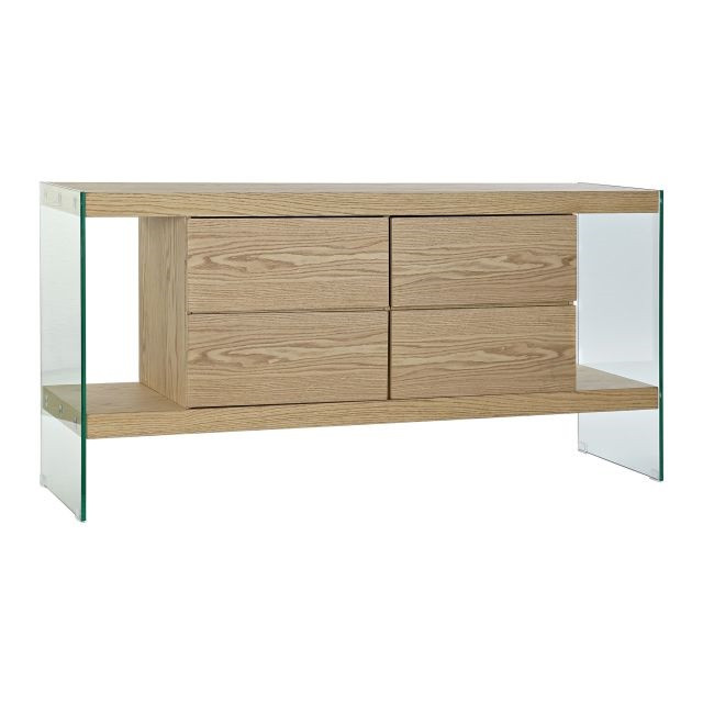Tálalószekrény üveg, mdf 160x45x80 cm világosbarna, átlátszó