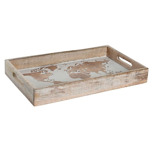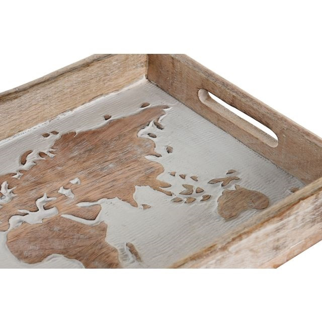 Tálca világtérkép mangófa 39x23x6 cm barna, fehér
