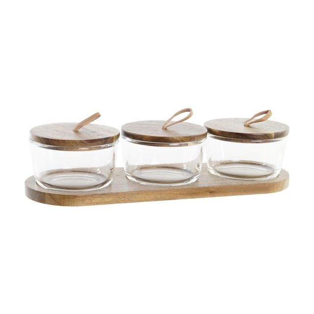 Tároló szett akácfa, üveg 31x10,5x7 cm barna, átlátszó S/4