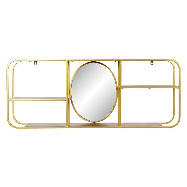 Tükör polccal fém, üveg, fa 100x18x40 cm arany, barna